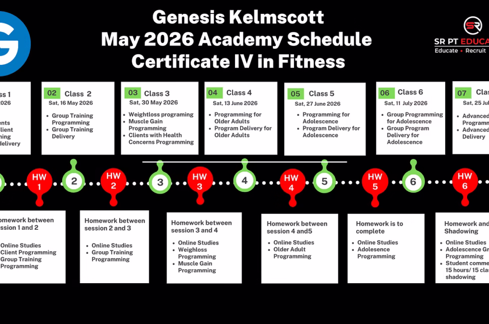 Begin your fitness career with confidence through the Genesis Kelmscott Academy, commencing March 2026. This Academy offers a structured, hands-on learning experience for students aiming to become skilled and job-ready personal trainers inside one of Perth’s most established fitness clubs.